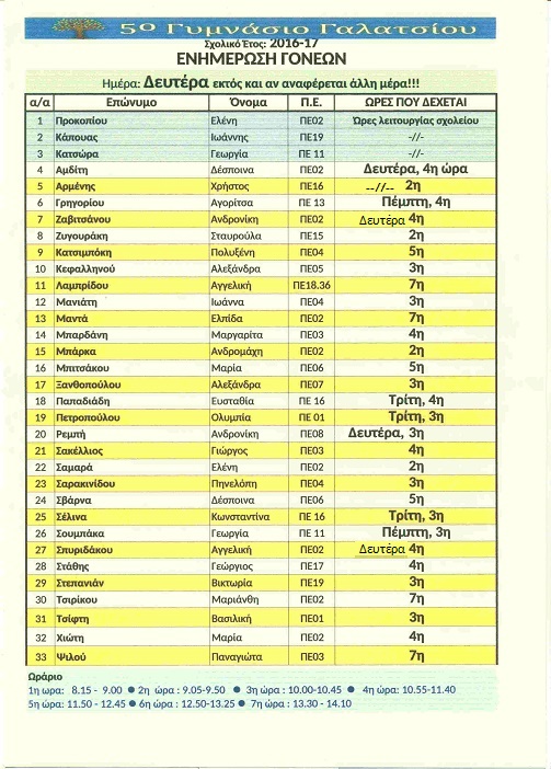 Αναρτήθηκε στην Ιστοσελίδα μας το Πρόγραμμα Eνημέρωση των γονέων & κηδεμόνων από τους καθηγητές του σχολείου