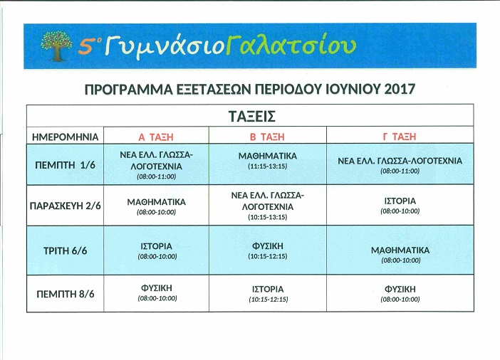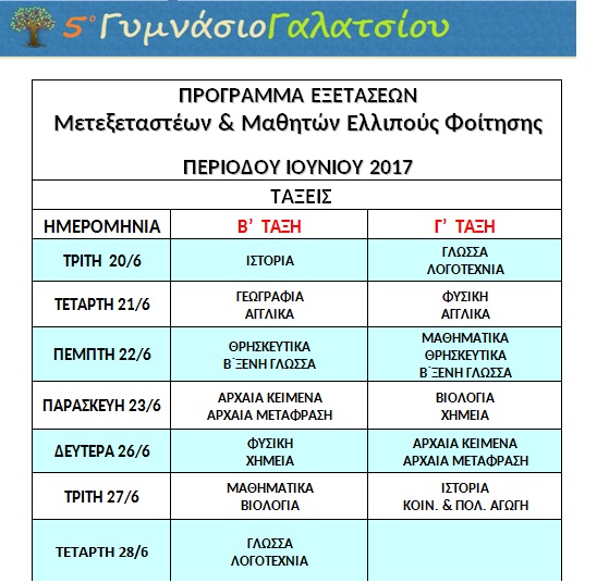 Εικ. 1 : Πρόγραμμα Εξετάσεων Ιουνίου 2017