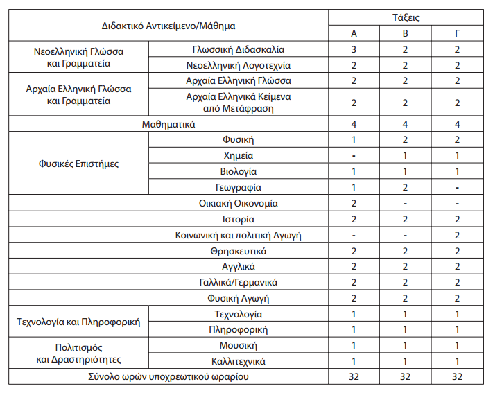 Δείτε το ΝΕΟ Ωρολόγιο Πρόγραμμα μαθημάτων Γυμνασίου για το νέο σχολικό έτος 2016-17.