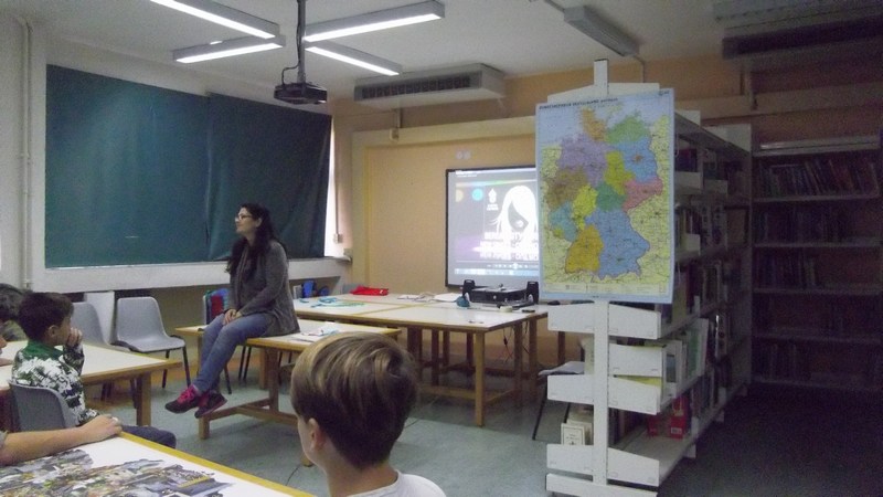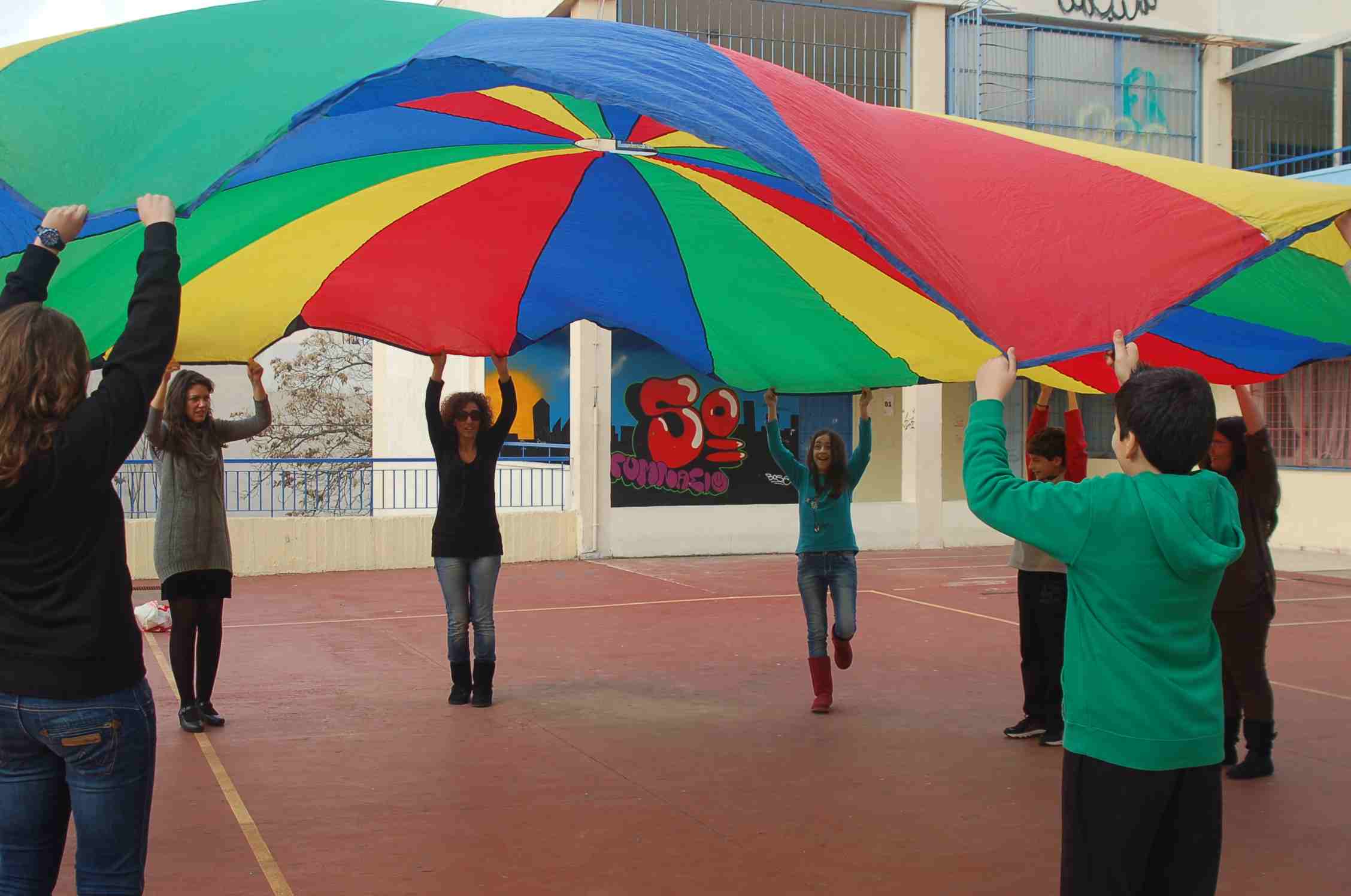 Η κινητή μονάδα του Glossomobil, μια ομάδα που με πρωτοβουλία του γερμανικού ινστιτούτου Goethe επισκέπτεται τα σχολεία και φέρνει τους μαθητές Γερμανικών σε επαφή με τη γλώσσα και τον πολιτισμό της Γερμανίας, ήρθε και πάλι στο σχολείο μας! Οι τάξεις των Γερμανικών άκουσαν τραγούδια, έπαιξαν με το χάρτη της Γερμανίας και γνώρισαν πρόσωπα, αξιοθέατα και αντικείμενα που σχετίζονται με τον πολιτισμό και την καθημερινή ζωή. Το πιο διασκεδαστικό κομμάτι του εργαστηρίου ήταν το παιχνίδι με το αλεξίπτωτο έξω στο προαύλιο. Περάσαμε υπέροχα! (Δευτέρα 9/11/2015)