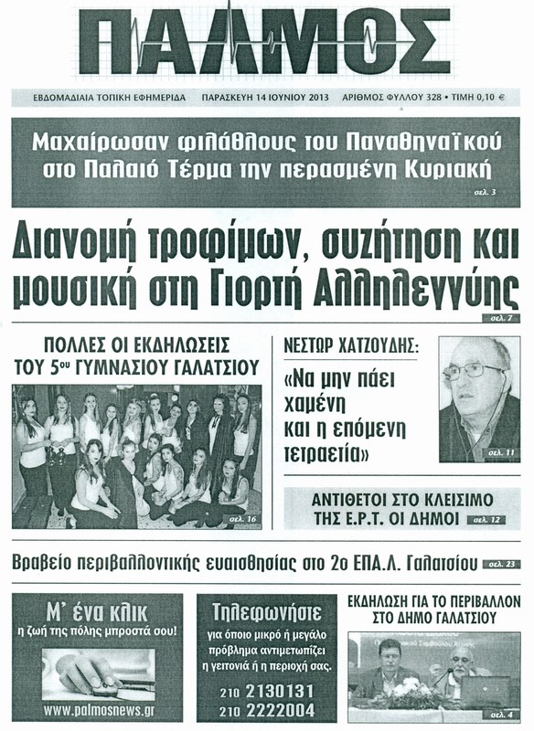 Εφημερίδα: Σας ευχαριστούμε πολύ σας ευχόμαστε καλή επιτυχίας στο έργο σας.