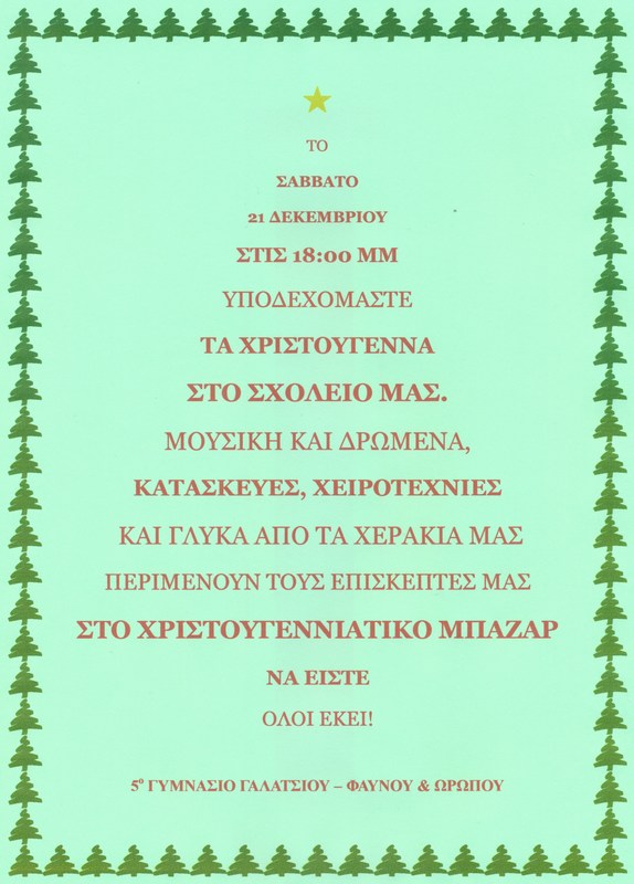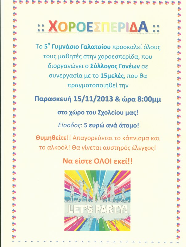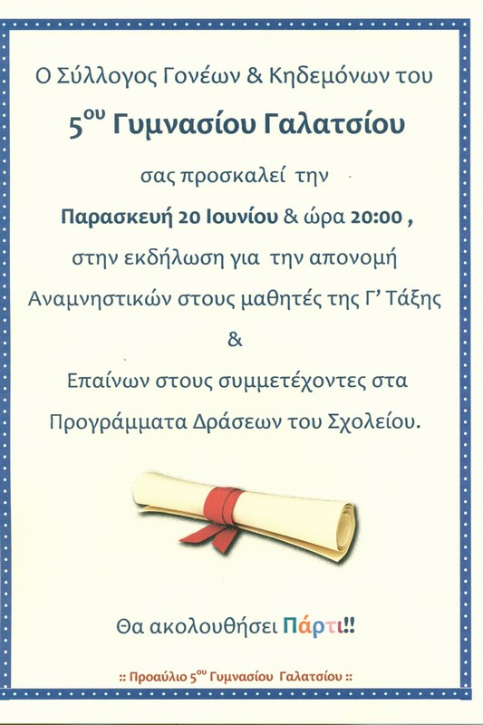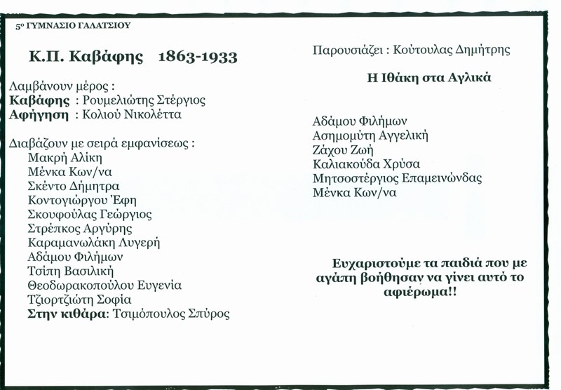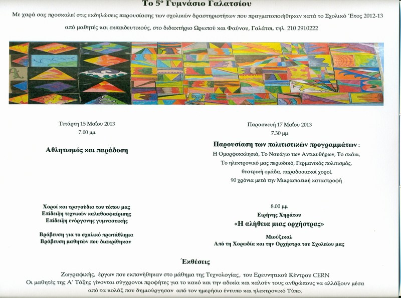 Σας περιμένουμε στην παράσταση, στην αίθουσα εκδηλώσεων του 5ου Γυμνασίου Γαλατσίου, Φαύνου & Ωρωπού ,