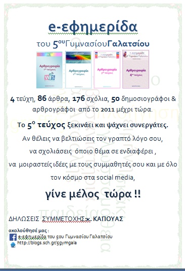 Το 5ο τεύχος της e-εφημερίδαςτου σχολείου ξεκινάει και θέλει συνεργάτες!! Δήλωσε και εσύ συμμετοχή και