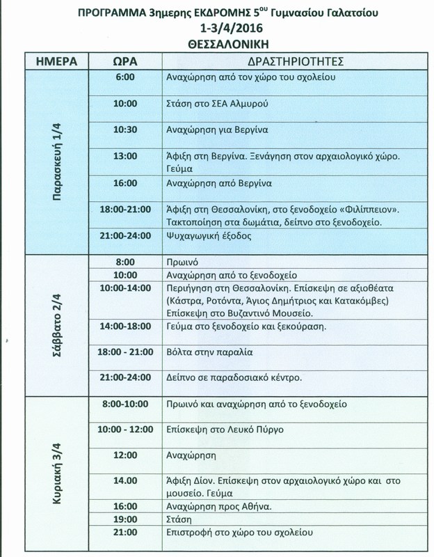 Η Γ' τάξη σε 3ημερη εκδρομή στην Θεσσαλονίκη (1-3/4/2016). Δείτε το πρόγραμμα :