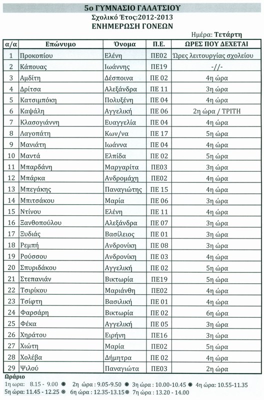 Αναρτήθηκε στην Ιστοσελίδα μας το Πρόγραμμα Eνημέρωση των γονέων & κηδεμόνων από τους καθηγητές του σχολείου
