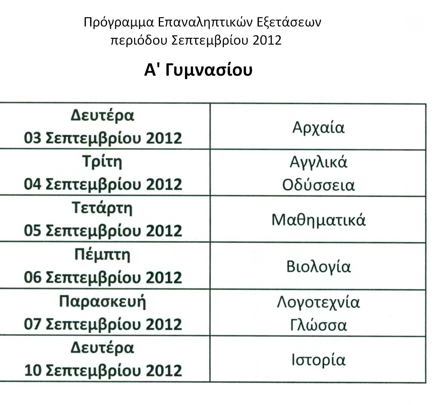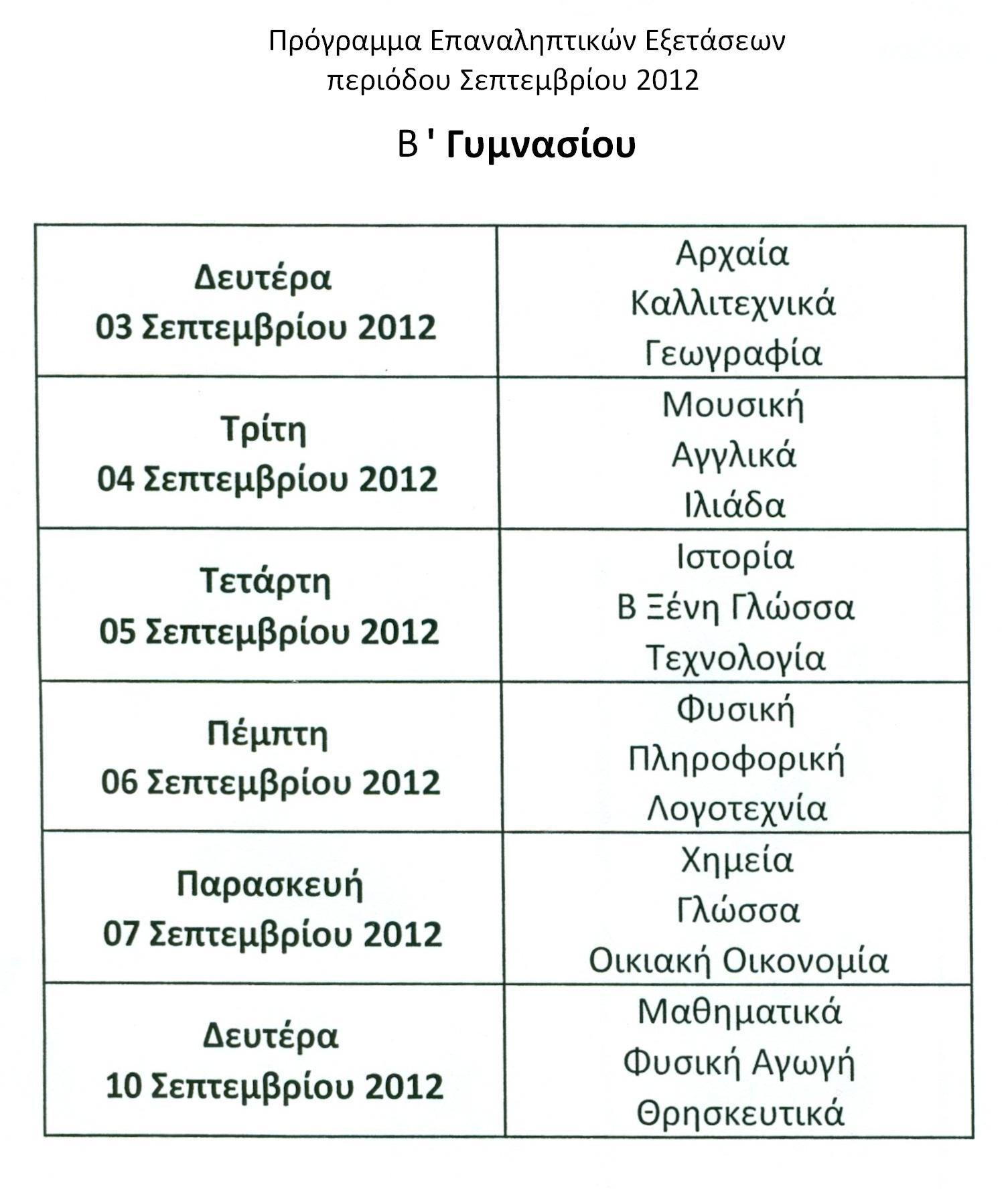 Οι επαναληπτικές εξετάσεις Σεπτεμβρίου θα γίνουν το διάστημα από 2-9 Σεπτεμβρίου. Το αναλυτικό πρόγραμμα των εξετάσεων έχει ως εξής:
