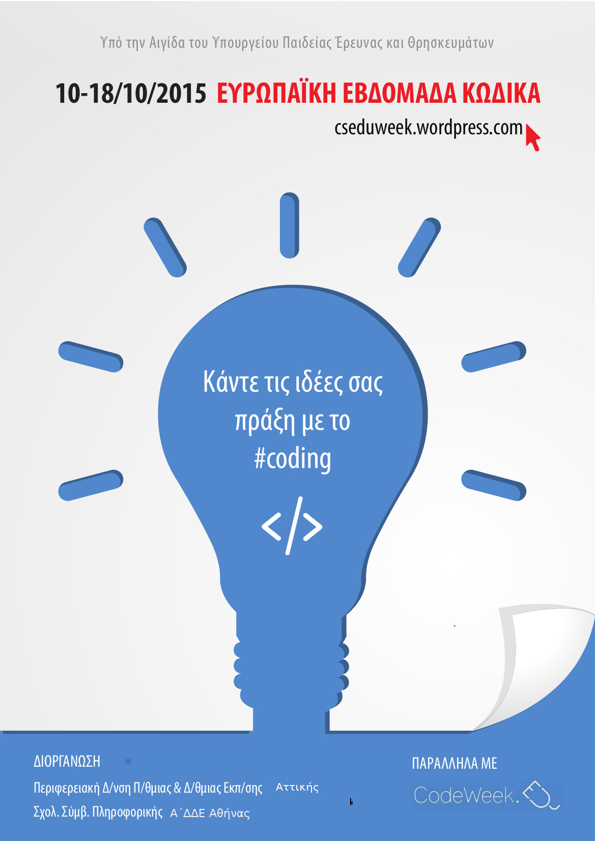 Γι 'αυτό λοιπόν , στα πλαίσια της Ευρωπαϊκής Εβδομάδας Κώδικα (10-18 Οκτωβρίου 2015), θα πραγματοποιηθούν εργαστήρια με θέματα :