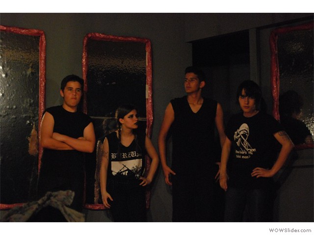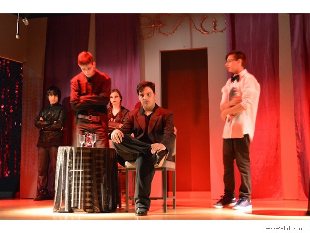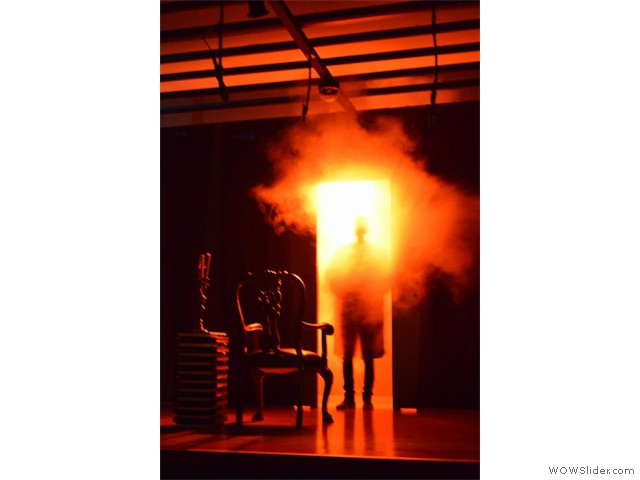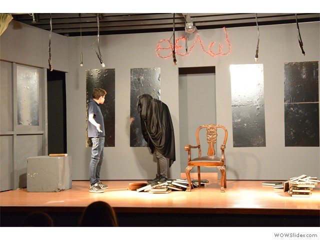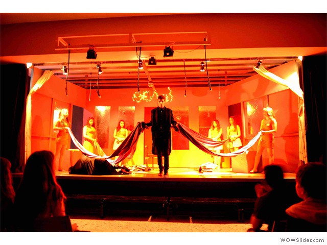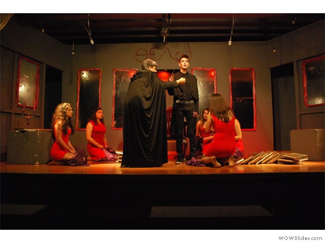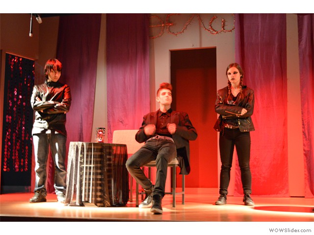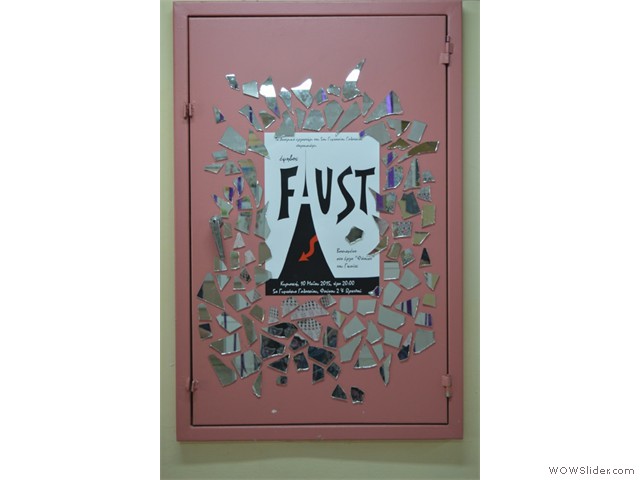 Εικαστική παρέμβαση στην είσοδο του σχολείουΦέτος η αυλαία της θεατρικής μας σκηνής ανοίγει με μια απόπειρα να παίξουμε με το διάβολο!... Για να ακριβολογήσουμε, όχι με το «βαρόνο σατανά» αυτοπροσώπως, αλλά με έναν έφηβο διαβολάκο, που βάζει σε πειρασμό έναν έφηβο Φάουστ, δυο ήρωες δανεισμένους από το κλασικό μεγαλειώδες έργο του Γκαίτε «Φάουστ».