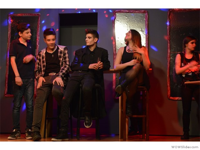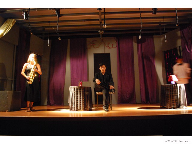 Η αυλαία ανοίγει υπό τον ήχο σαξόφωνου. Βρισκόμαστε σ' ένα Jazz club.