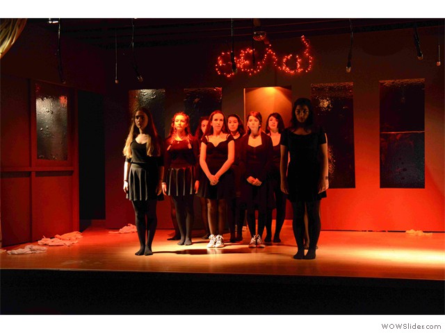 Ανεβαίνουν στη σκηνή ζωηρές κοπέλες, η φωνή της γειτονιάς, που μεταφέρουν τα γεγονότα.