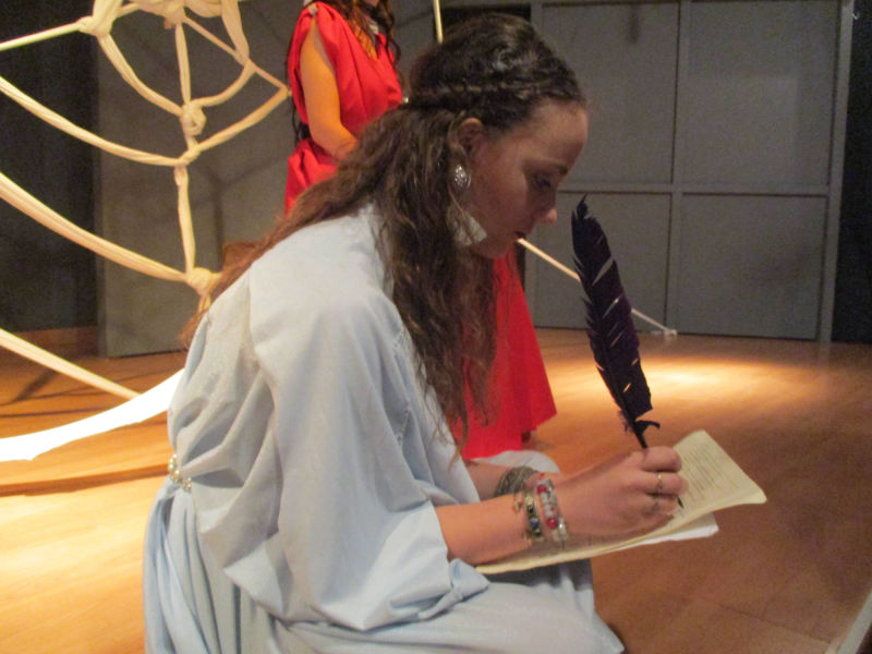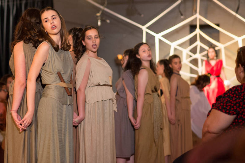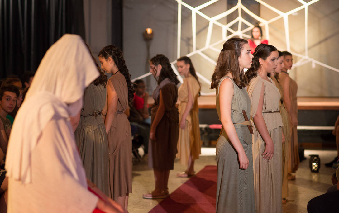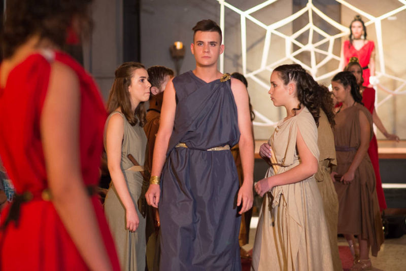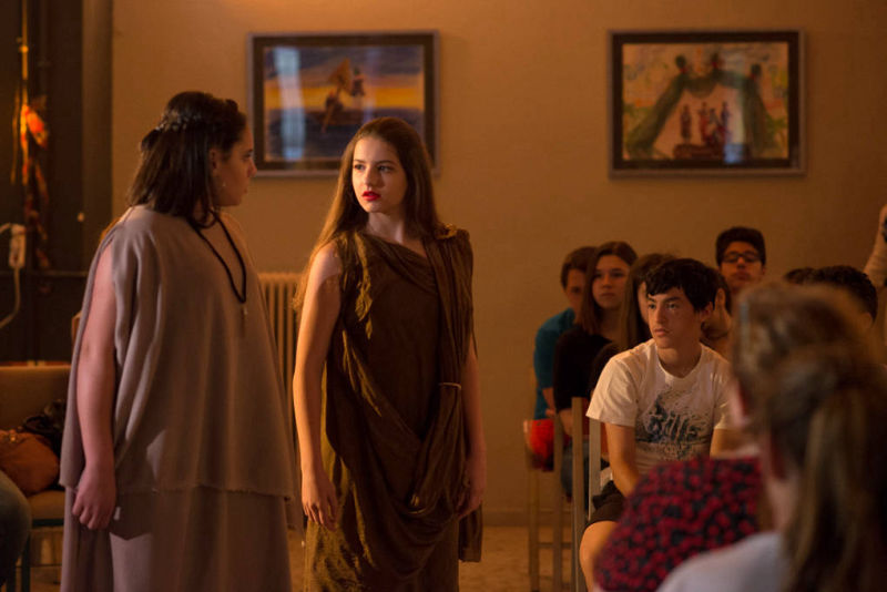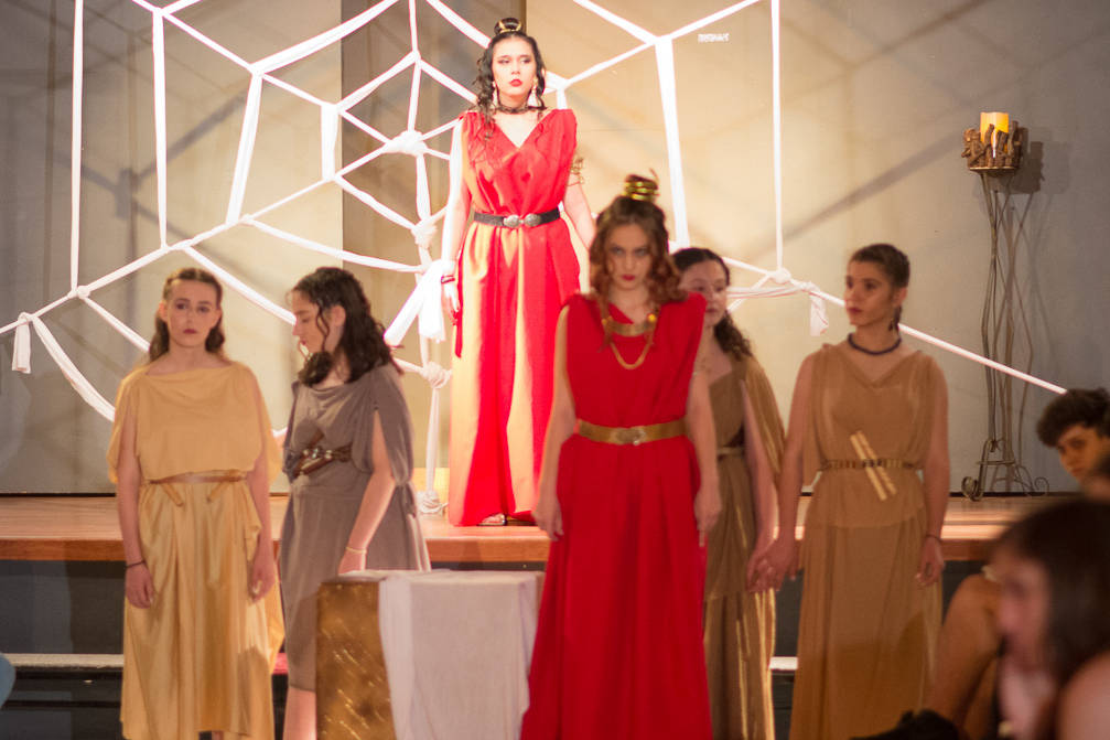 Το θεατρικό εργαστήρι του 5ου Γυμνασίου Γαλατσίου προετοίμασε φέτος ένα ιδιαίτερο έργο, το κείμενο του οποίου αποτελεί διασκευή και σύνθεση της αρχαίας ελληνικής τραγωδίας «Μήδεια» του Ευριπίδη καθώς και του έργου της γερμανίδας συγγραφέα Κρίστα Βολφ «Μήδεια:Φωνές». Το τελευταίο είναι βασισμένο στο μύθο της Μήδειας, αλλά τον προσεγγίζει τονίζοντας ιδιαίτερα το θέμα του Ξένου, του διαφορετικού μέσα από την ηρωίδα. Ο διάλογος αυτός του αρχαίου μας τραγικού ποιητή με τη σύγχρονη ξένη συγγραφέα εμπλουτίστηκε και με μια τρίτη προσέγγιση του κειμένου από την ομάδα, καθώς η Μήδεια αναγνώστηκε και ως μια έντονη γυναικεία επαναστατική παρουσία σε έναν ανδροκρατούμενο αρχαίο κόσμο.