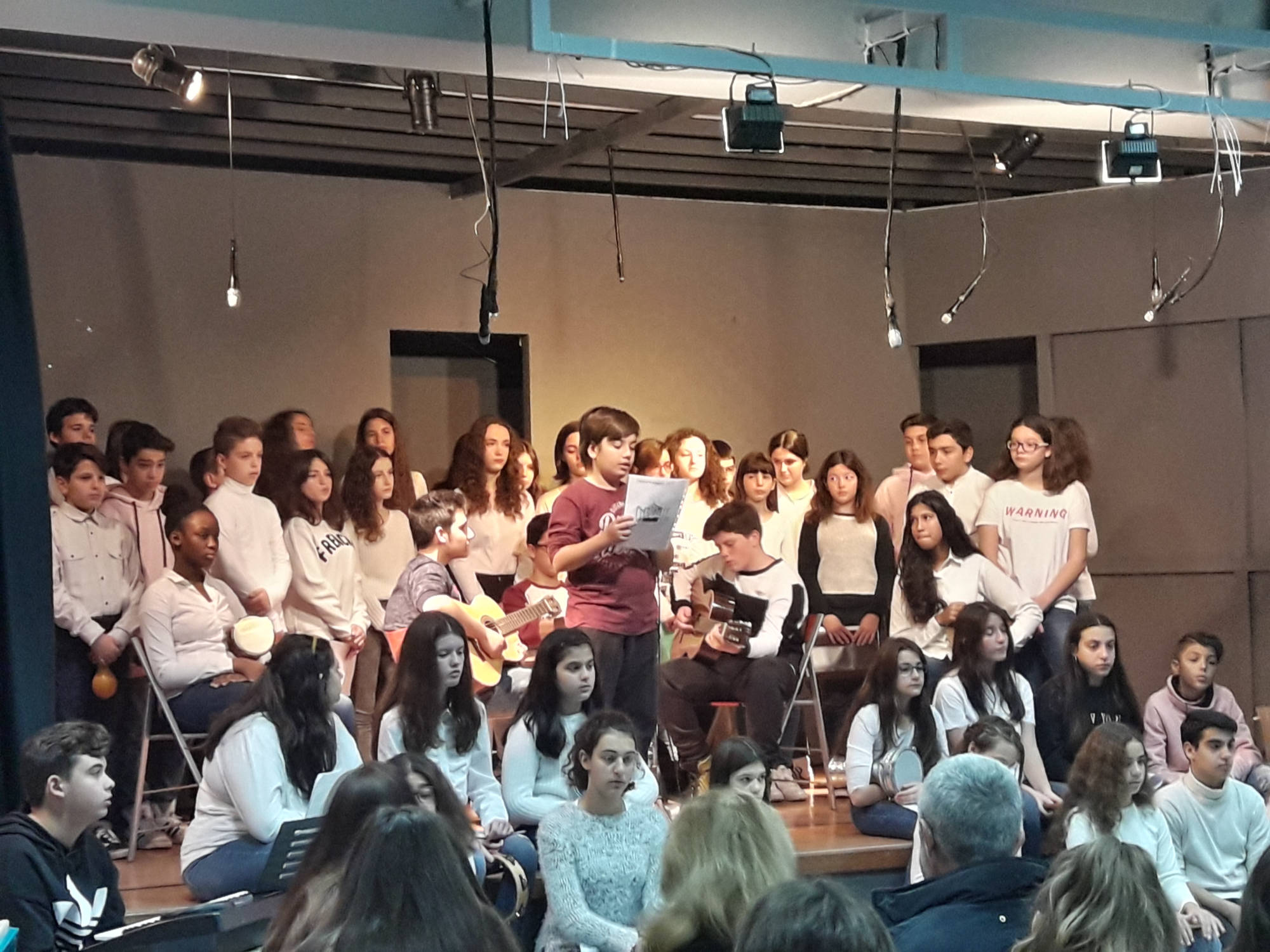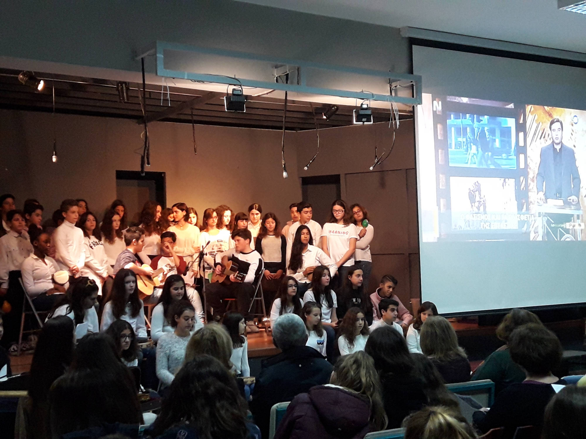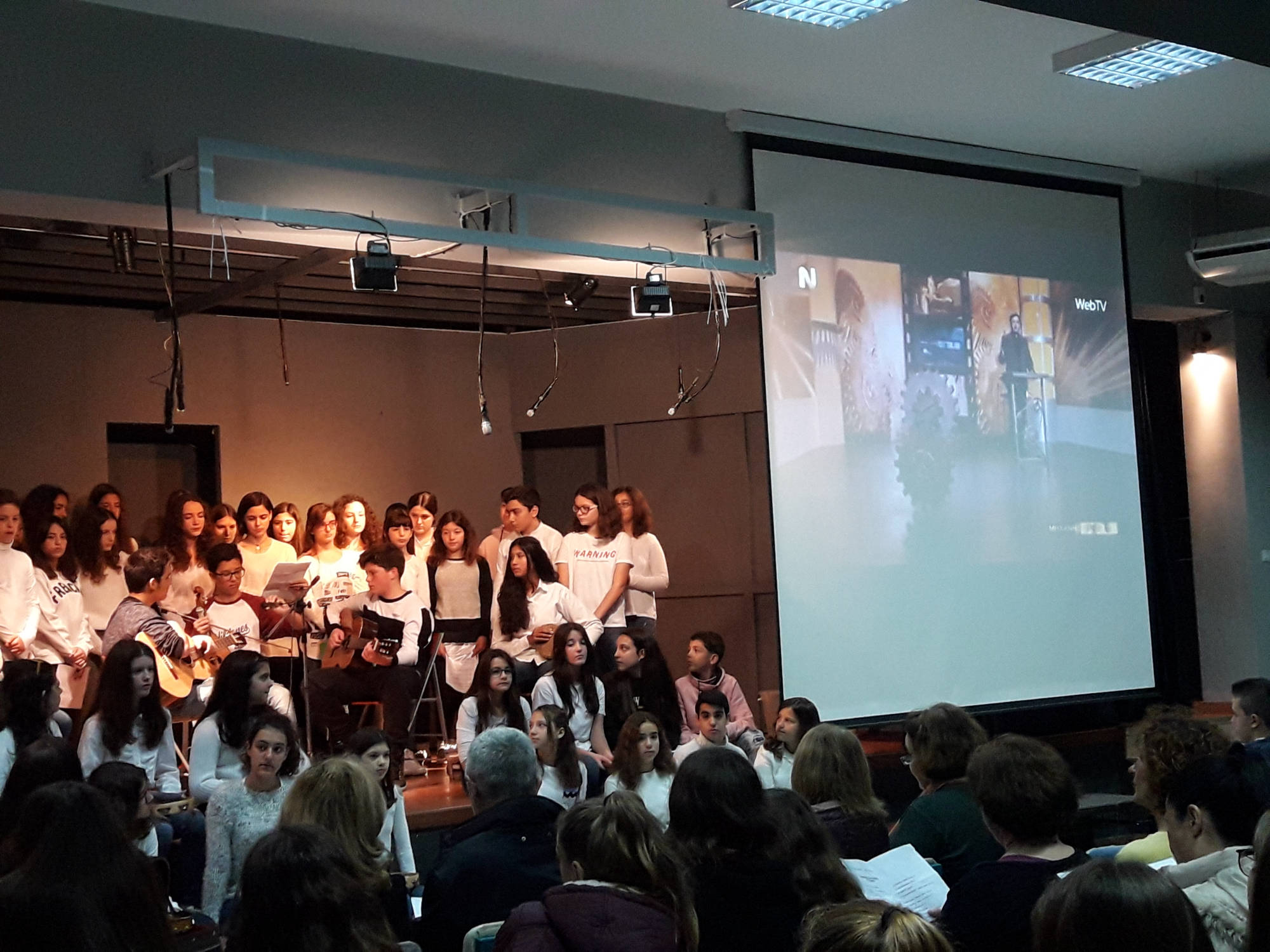 απόδοση από την χορωδία του σχολείου με μαέστρο της καθηγήτρια Μουσικής του σχολείου μας κας Χηράτου Ειρήνης.